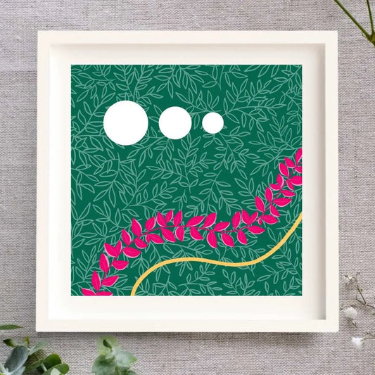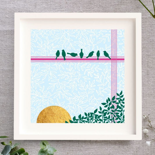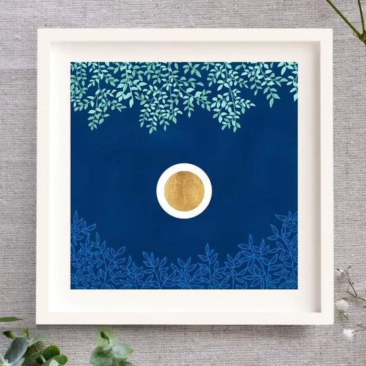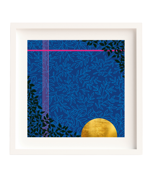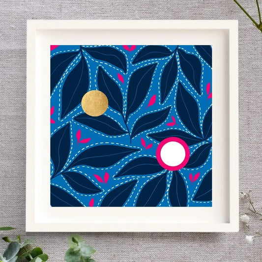 This popular collection of square prints is a celebration of colour, layers, texture, and joy. Each print is a little different, but each one is individually finished by hand with some gold leaf.