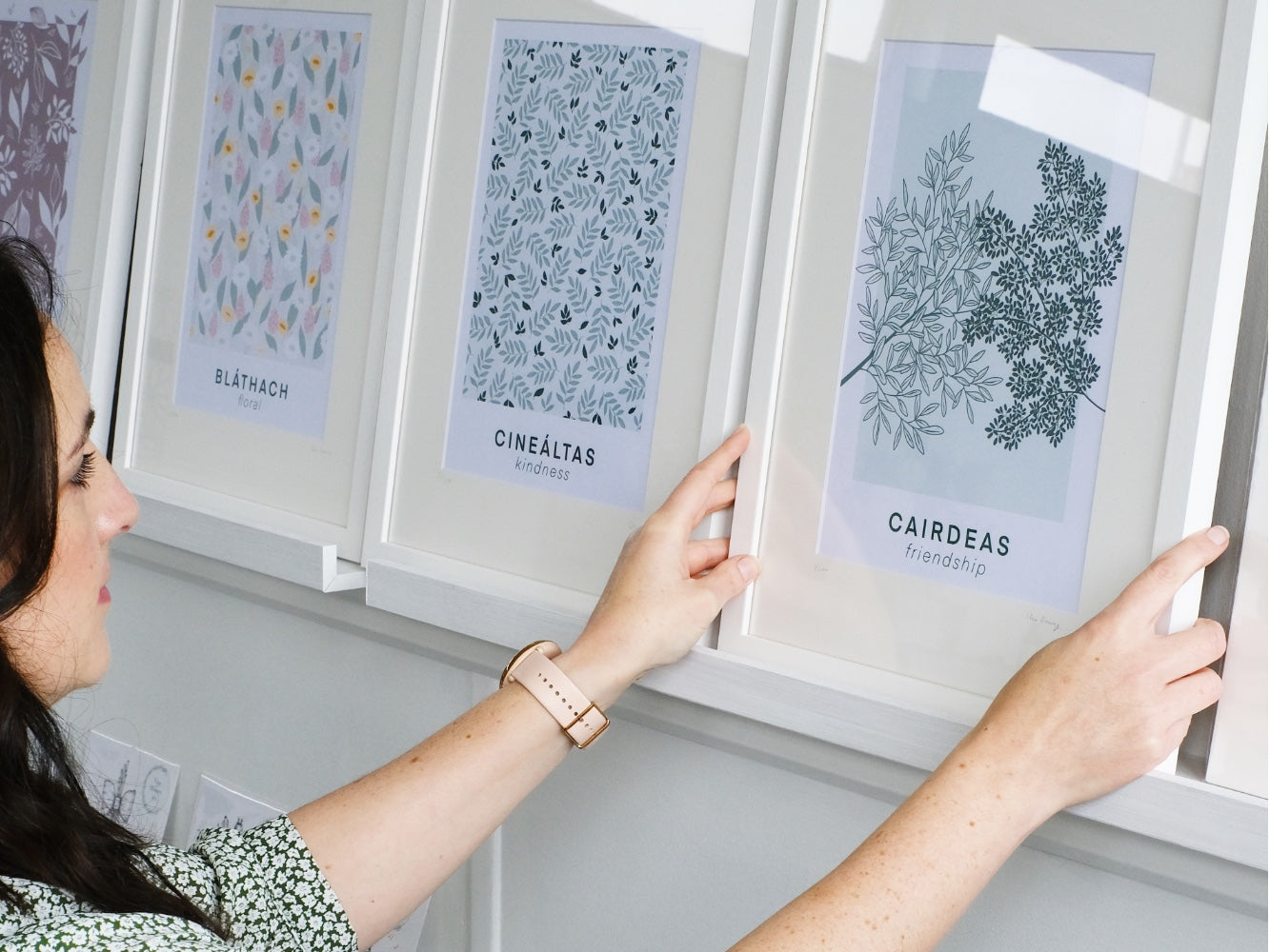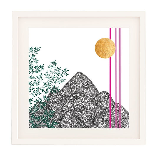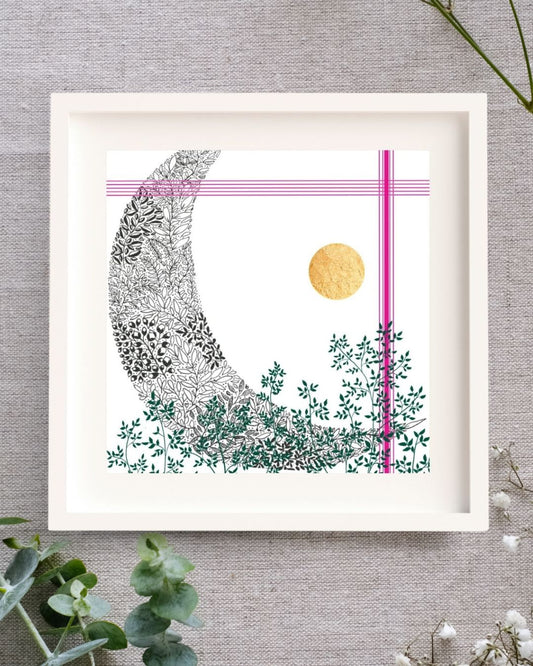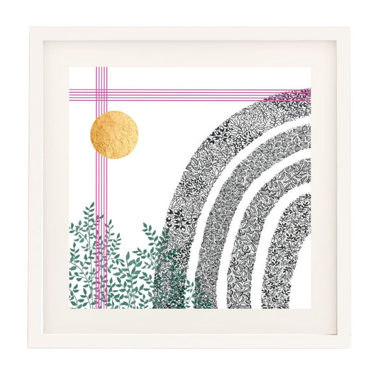 This popular collection of square prints is a celebration of colour, layers, texture, and joy. Each print is a little different, but each one is individually finished by hand with some gold leaf.