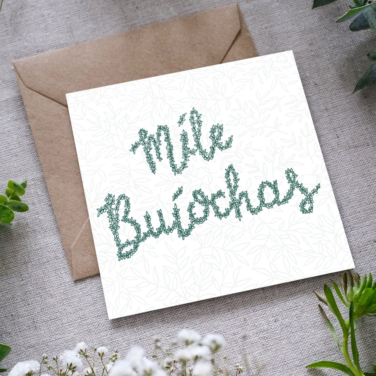 Say thank you in Irish and use your cúpla focal in a really easy and simple way. This is a very versatile card and is always well received with your hand written note inside.